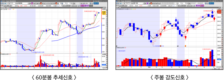 티레이더 일봉은 물론이고, 분봉(60분봉), 주봉의 신호강도 제공을 통해 투자자성향에 맞는