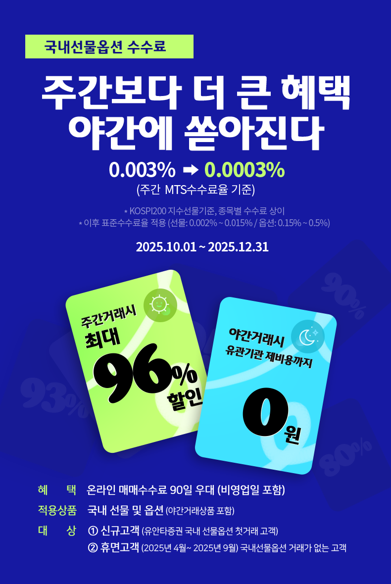 • 적용상품 : 국내 선물 및 옵션 (야간거래상품 포함)