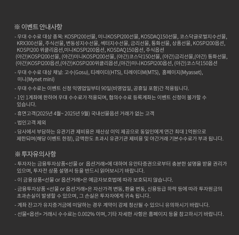 • 휴면고객(2025년 4월~ 2025년 9월) 국내선물옵션 거래가 없는 고객