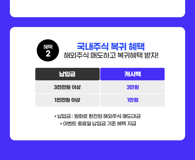 혜택2. 국내주식 복귀 혜택. 해외주식 매도하고 복귀혜택 받자!