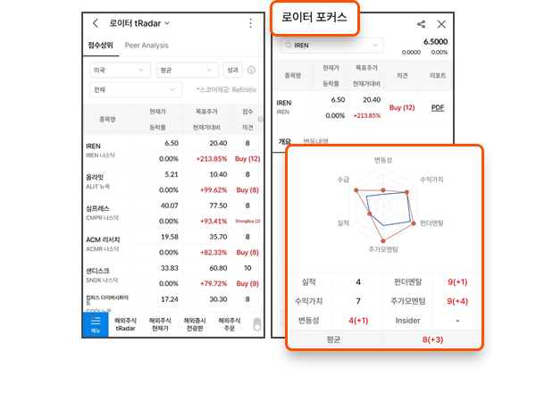 - 티레이더M → 해외주식 → 로이터 tRadar